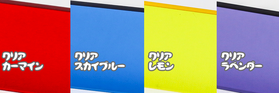 クリアカーマイン/クリアスカイブルー/クリアレモン/クリアラベンダーの4色を オプション料金無料でご利用いただけます。